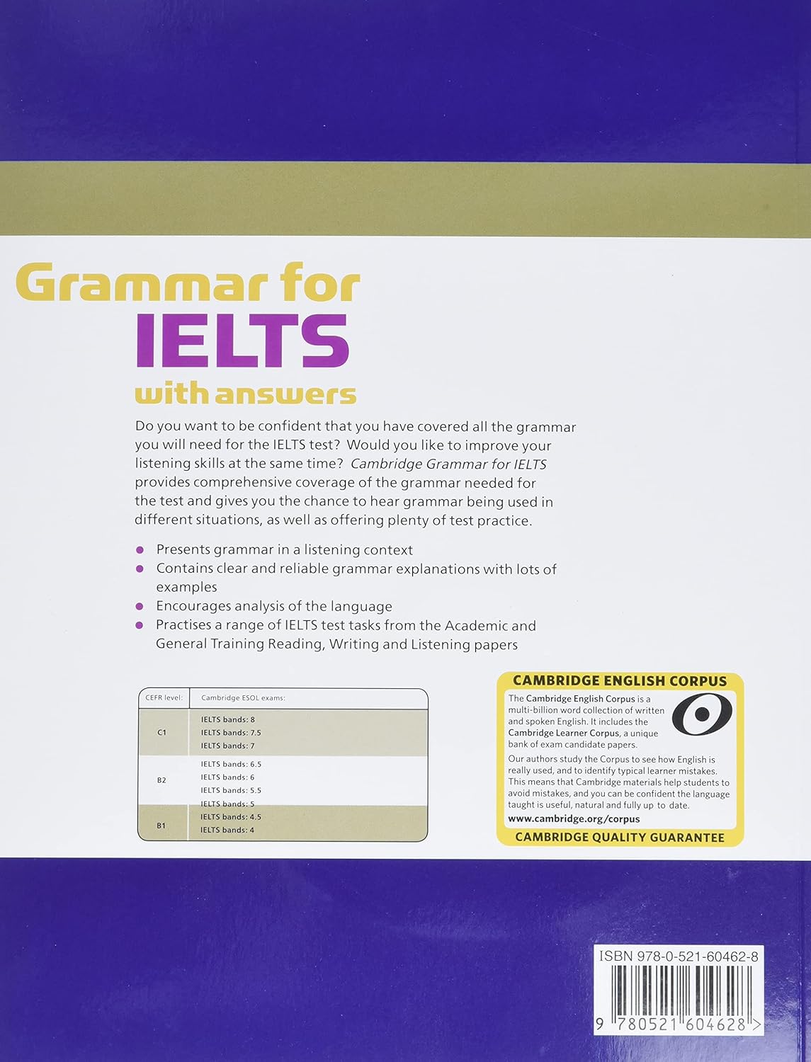 Designed for self study it focuses on the ‘grammar required for all sections of the IELTS test Listening Reading Writing and Speaking It includes clear explanations practice exercises and a complete answer key to track progress